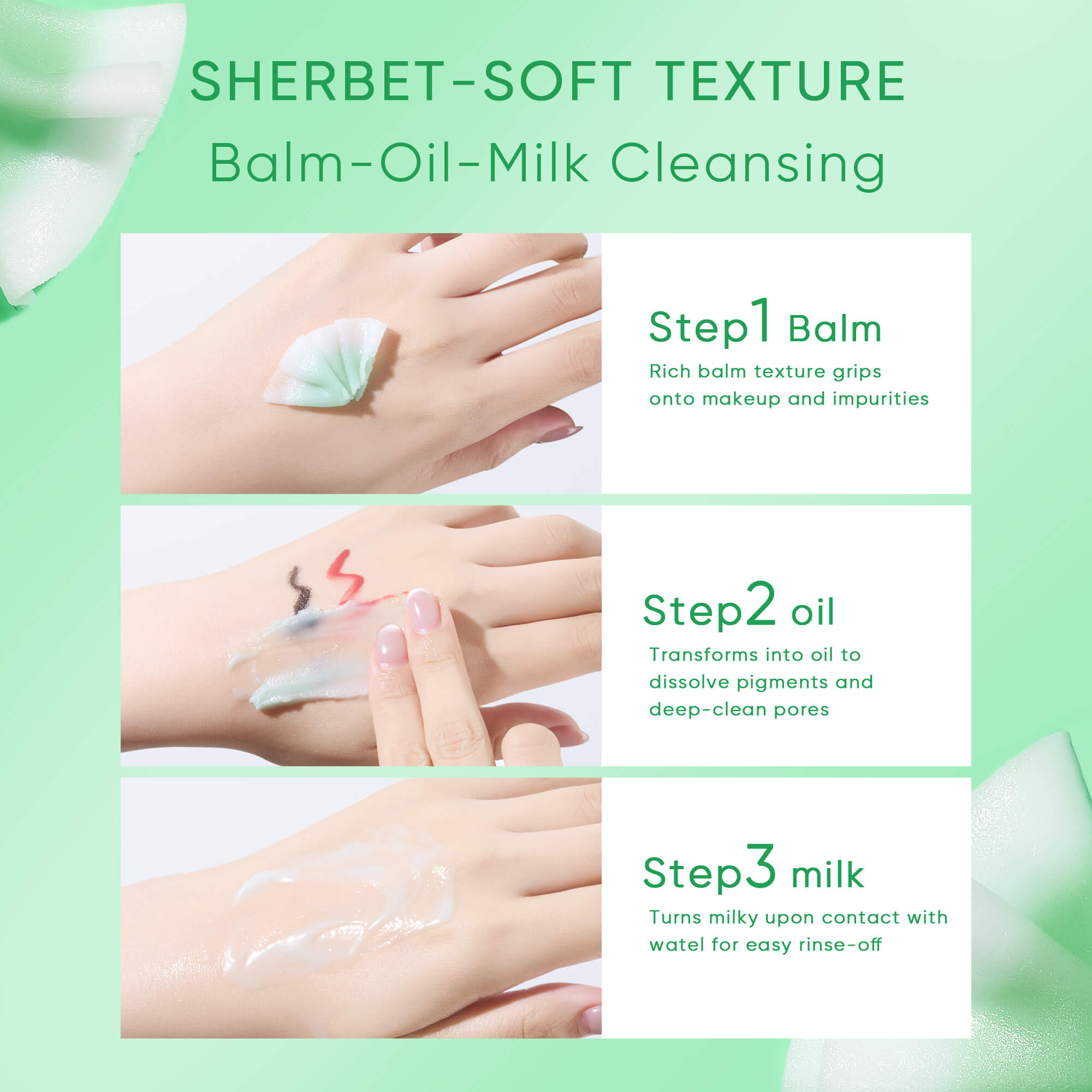 Its innovative balm-to-oil-to-milk texture transforms during cleansing, leaving skin clean, soft, and comfortable.