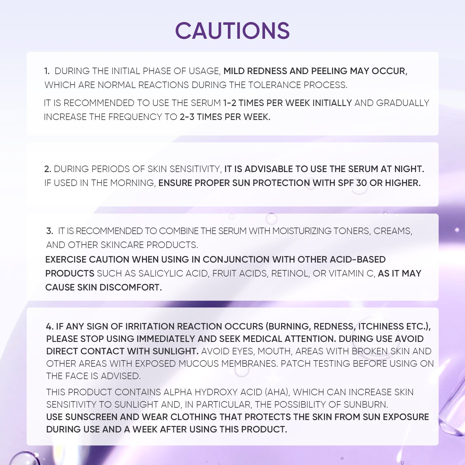 • Best used at night; avoid combining with strong acids or retinol on the same night