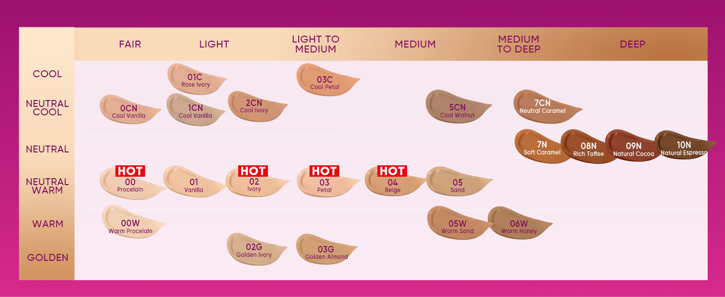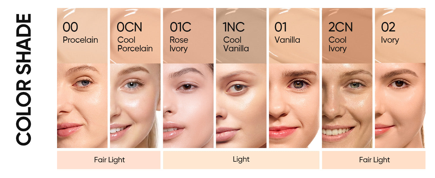 - Available Shades: Porcelain, Vanilla, Ivory, Petal, Almond, Beige, Sand, Honey