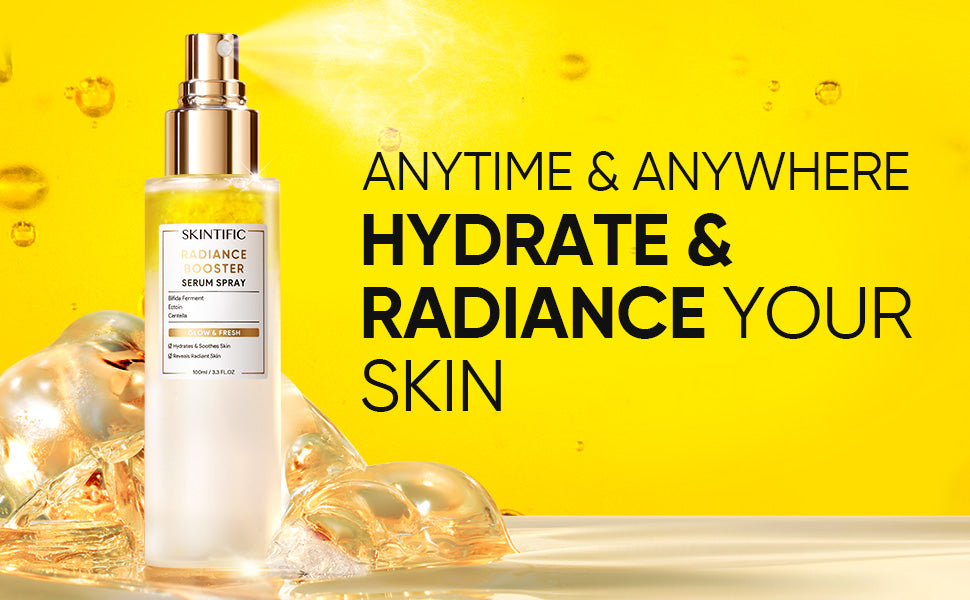 Face spray infused with serum and oil that hydrates and leaves your skin glowing, perfect for use Anytime, Anywhere